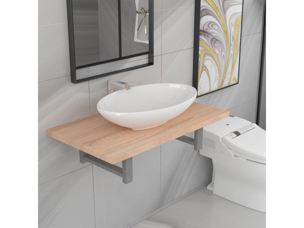 Koupelnová nástěnná police z pevného materiálu je výjimečně stabilní a odolná a perfektně doplňuje keramické umyvadlo. Toto keramické umyvadlo s vysoce lesklou povrchovou úpravou se snadno čistí vlhkým hadříkem. Polici můžete snadno upevnit ke zdi, potřebné držáky a montážní materiály jsou součástí balení.