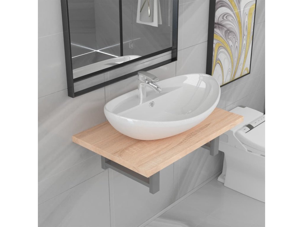 Koupelnová nástěnná police z pevného materiálu je výjimečně stabilní a odolná a perfektně doplňuje keramické umyvadlo. Toto keramické umyvadlo s vysoce lesklou povrchovou úpravou se snadno čistí vlhkým hadříkem. Polici můžete snadno upevnit ke zdi, potřebné držáky a montážní materiály jsou součástí balení.