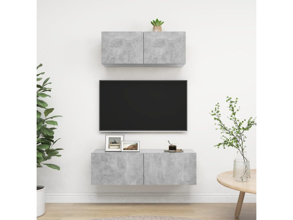 2dílný set TV skříněk betonově šedý kompozitní dřevo 3079122