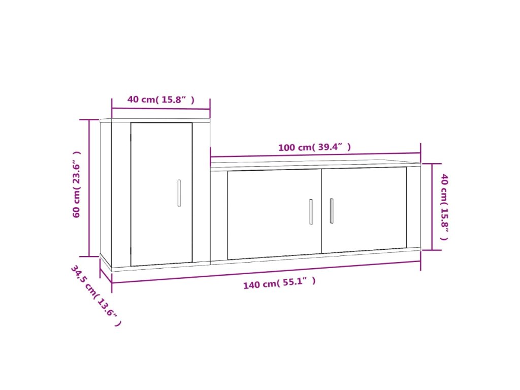 - 1x TV skříňka: 100 x 34,5 x 40 cm (D x Š x V)