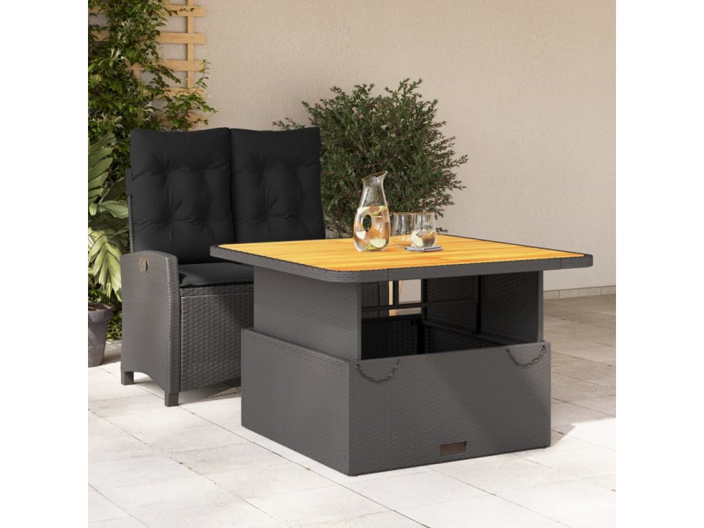 2dílný zahradní jídelní set s poduškami černý polyratan 3277391