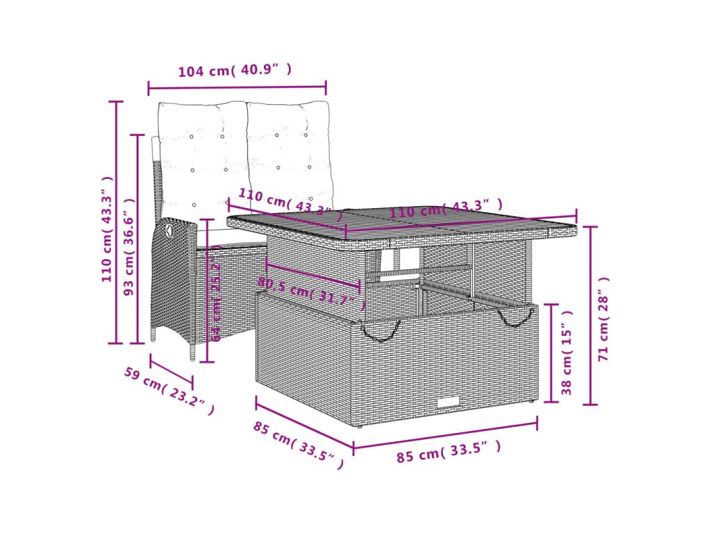 - Rozměry stolku: 110 x 110 x 40/71 cm (D x Š x V)