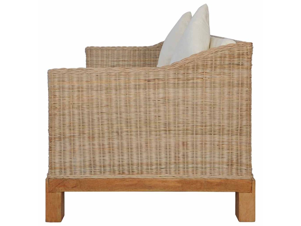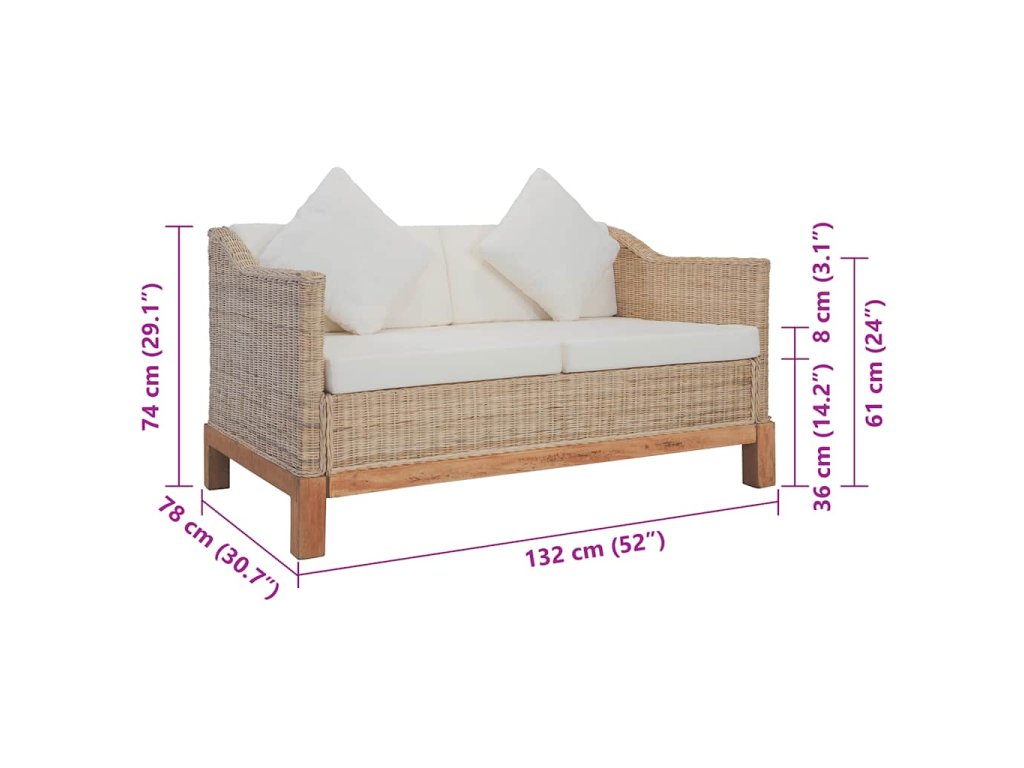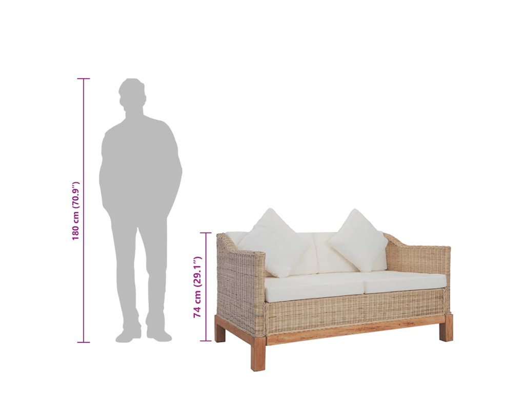Pohovka je vyrobená z pravého ratanu, je tudíž odolná a skvěle se hodí pro každodenní použití. Navíc se snadno čistí. Má robustní dřevěný rám, který má dlouhou životnost a je mimořádně stabilní. Tlusté podušky na sedák a na opěradlo, stejně jako i přiložené polštářky se dobře přizpůsobují vašemu tělu a jejich snímatelné potahy se dají prát.