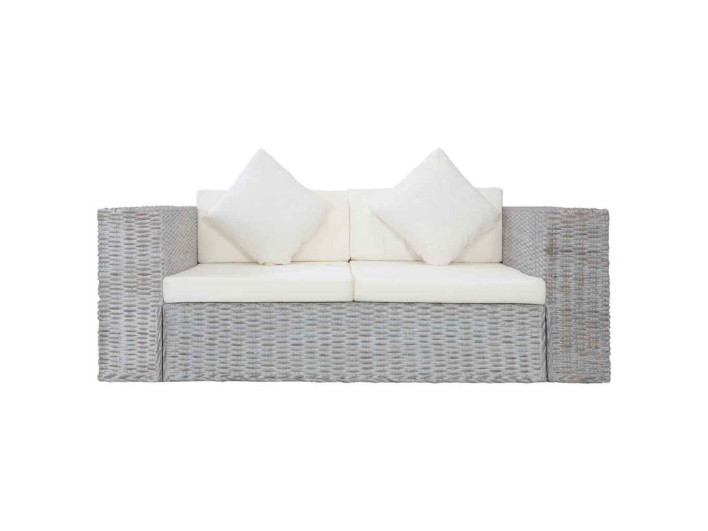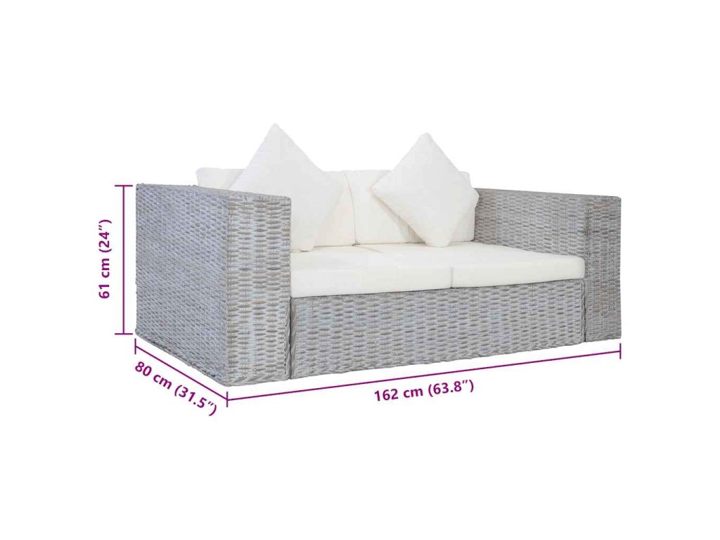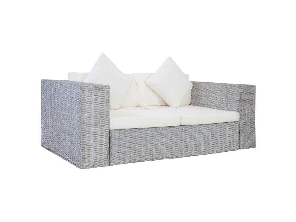 2místná pohovka s poduškami šedá přírodní ratan 283070