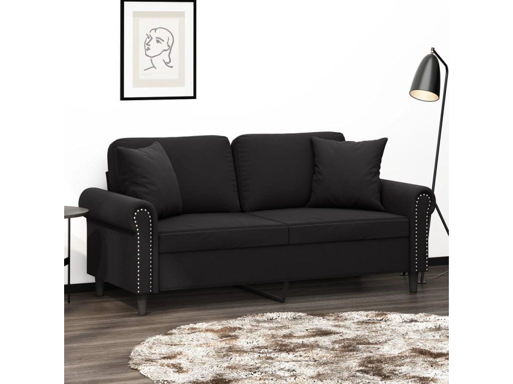 2místná pohovka s polštáři černá 140 cm samet 3200950