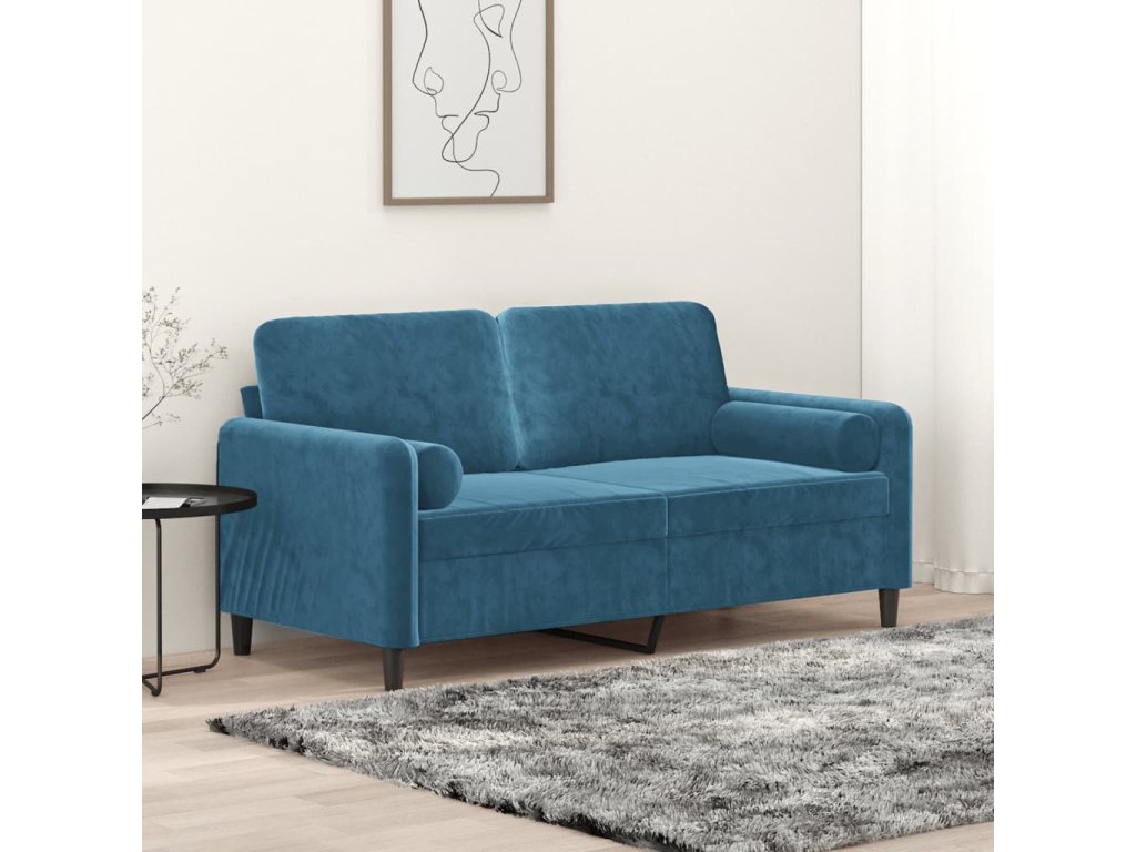 2místná pohovka s polštáři modrá 140 cm samet 3200890