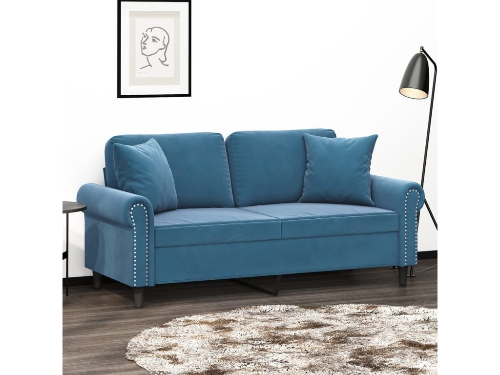 2místná pohovka s polštáři modrá 140 cm samet 3200954