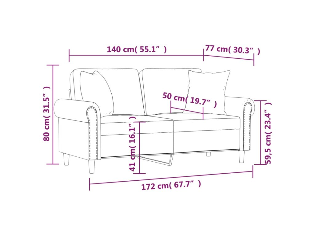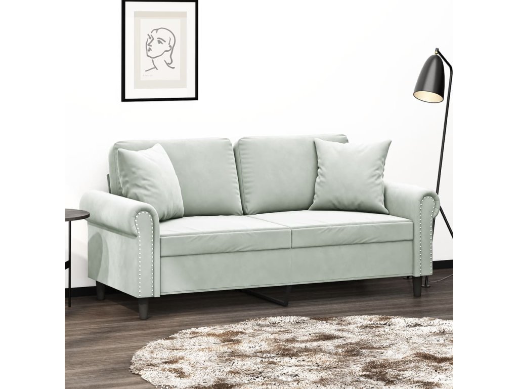 2místná pohovka s polštáři světle šedá 140 cm samet 3200945