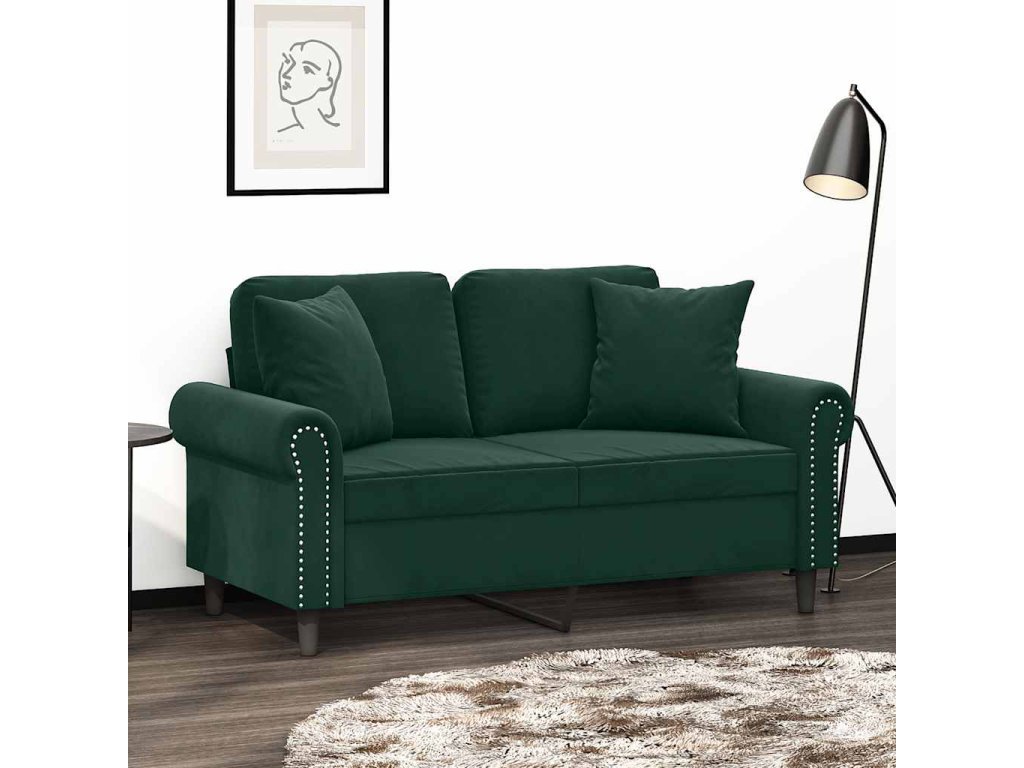 2místná pohovka s polštáři tmavě zelená 120 cm samet 3200937