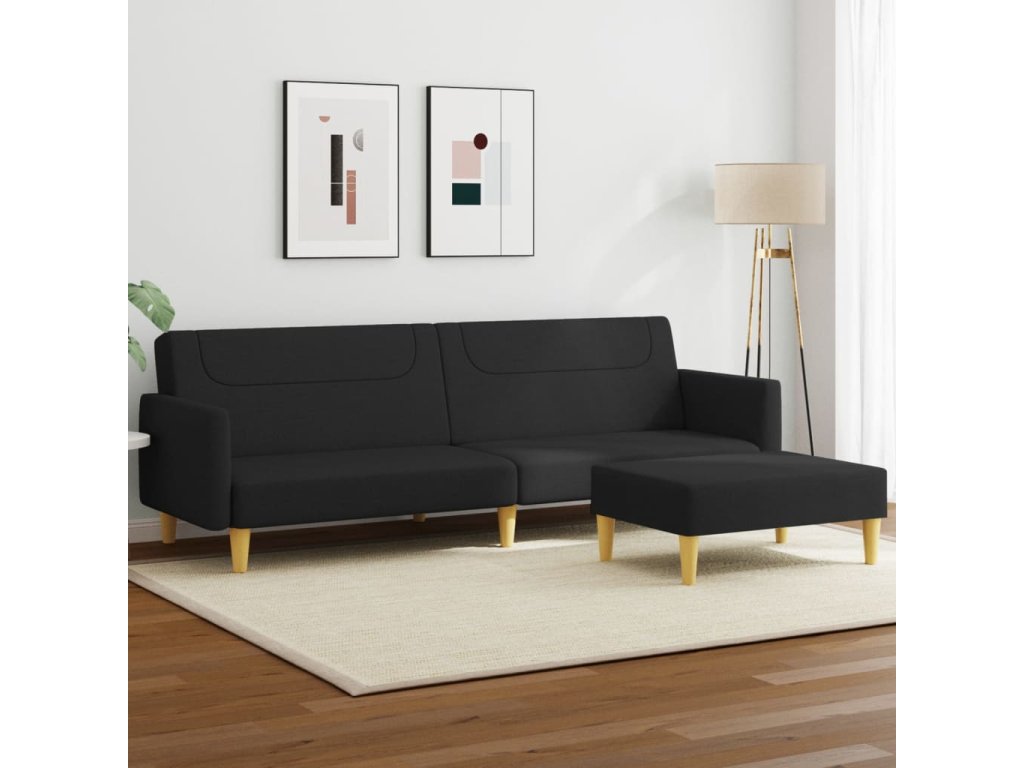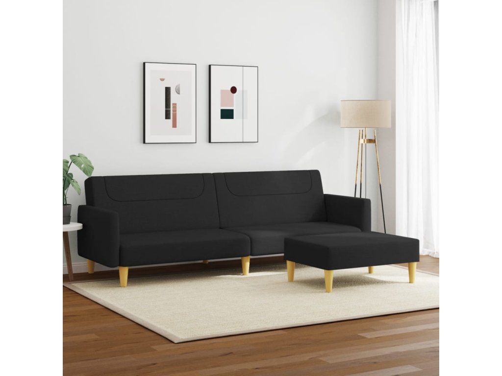 2místná rozkládací pohovka s podnožkou černá textil 3216245