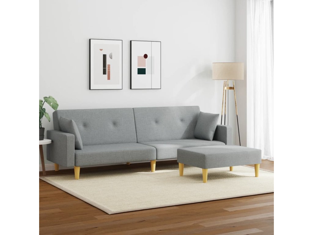 2místná rozkládací pohovka s podnožkou světle šedá textil 3216240