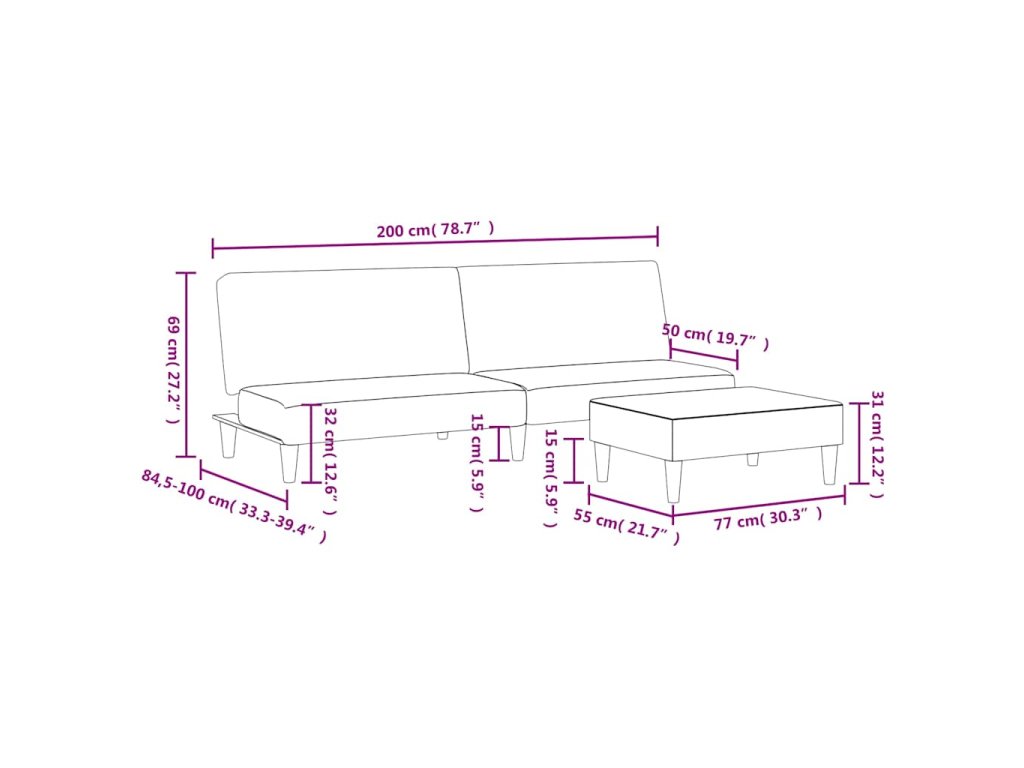 2místná rozkládací pohovka s podnožkou tmavě šedá samet 3216232
