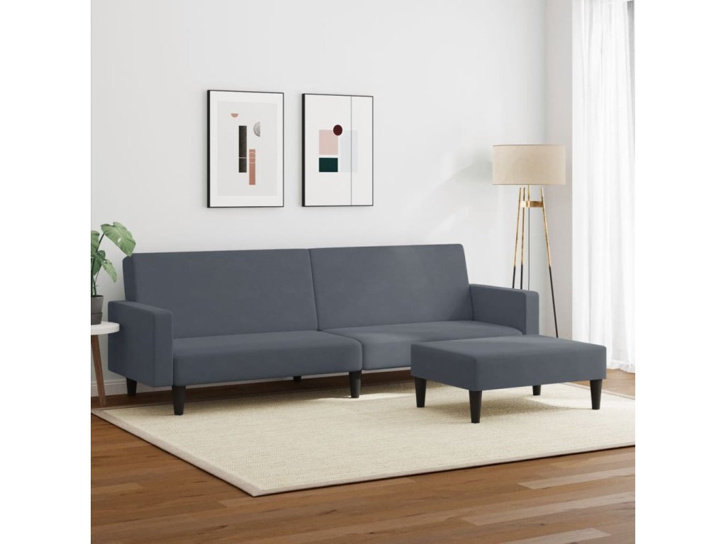 2místná rozkládací pohovka s podnožkou tmavě šedá samet 3216237