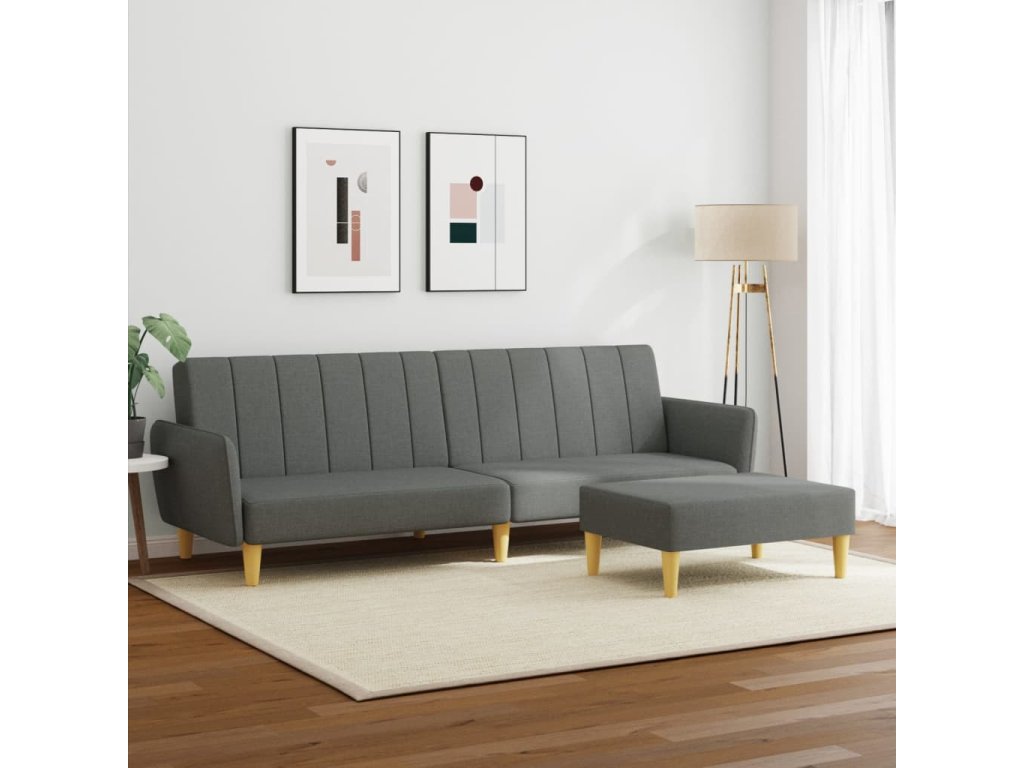 2místná rozkládací pohovka s podnožkou tmavě šedá textil 3216247