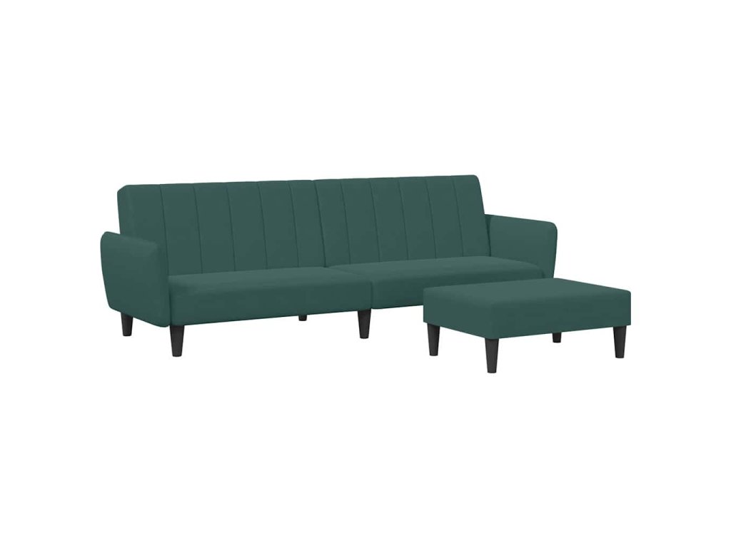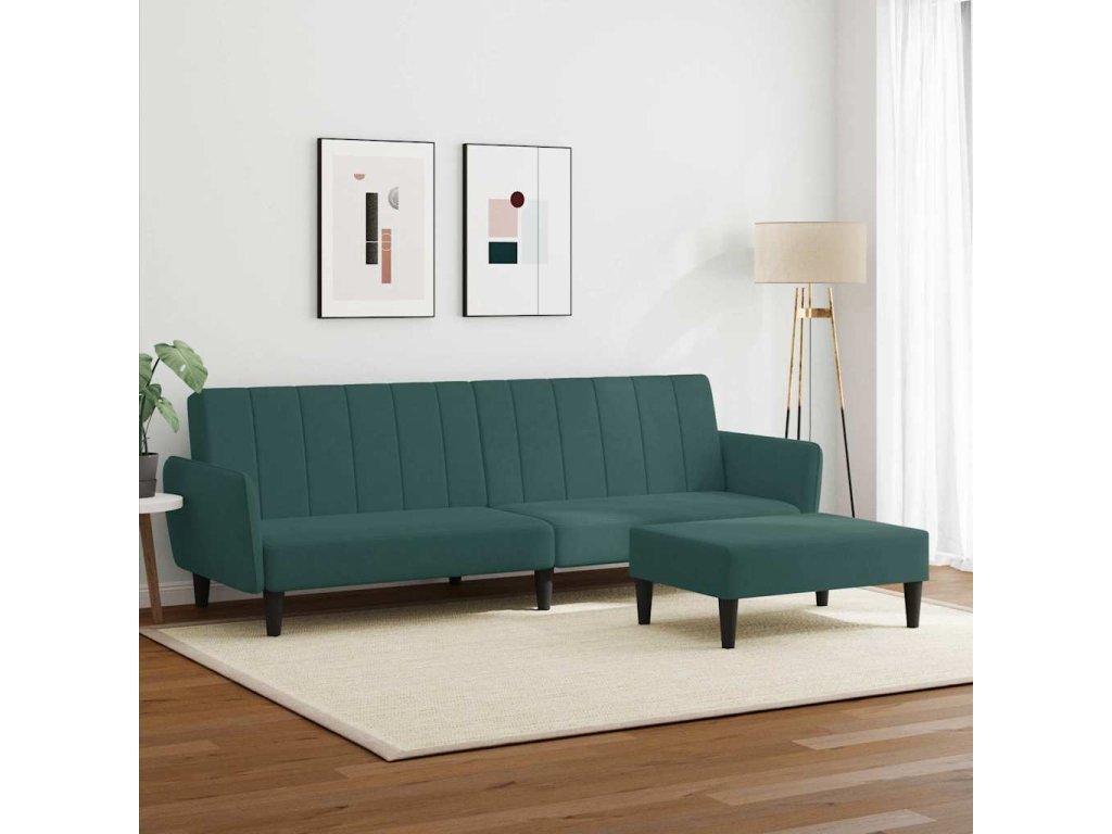 2místná rozkládací pohovka s podnožkou tmavě zelená samet 3216252