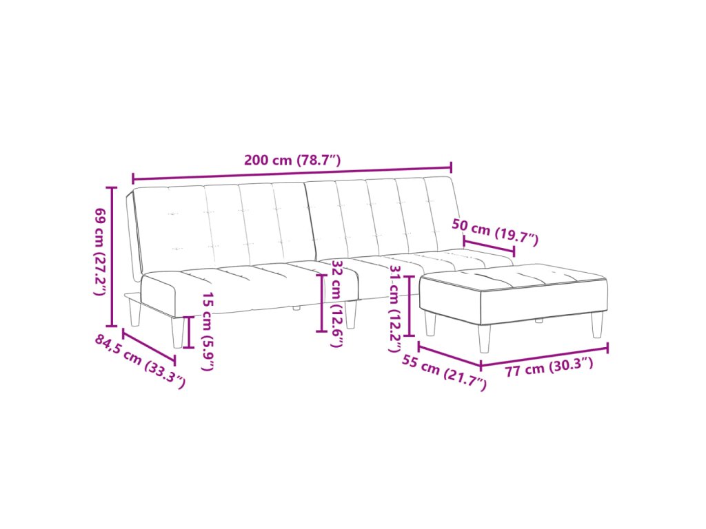 - Celkové rozměry: 200 x 84,5 x 69 cm (D x Š x V)