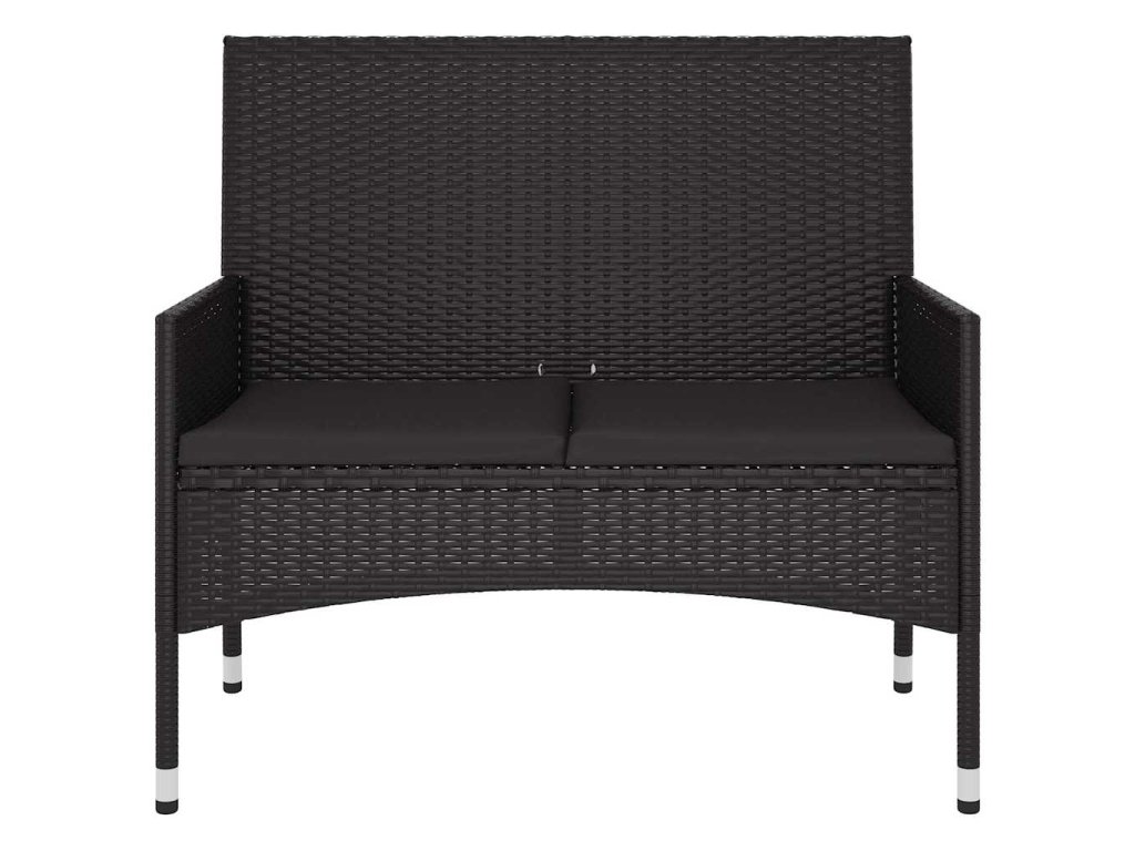 2místná zahradní lavice s poduškami černá polyratan 319490