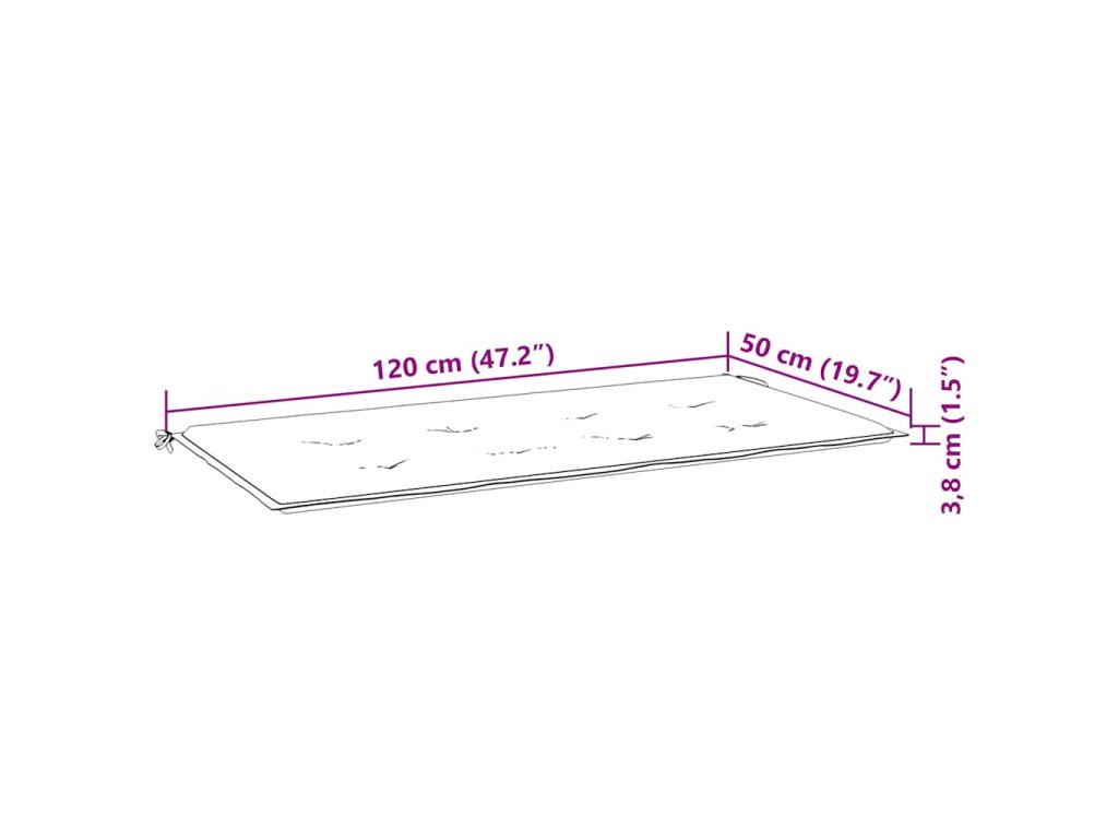 - Rozměry podušky: 120 x 50 x 4 cm (Š x H x T)