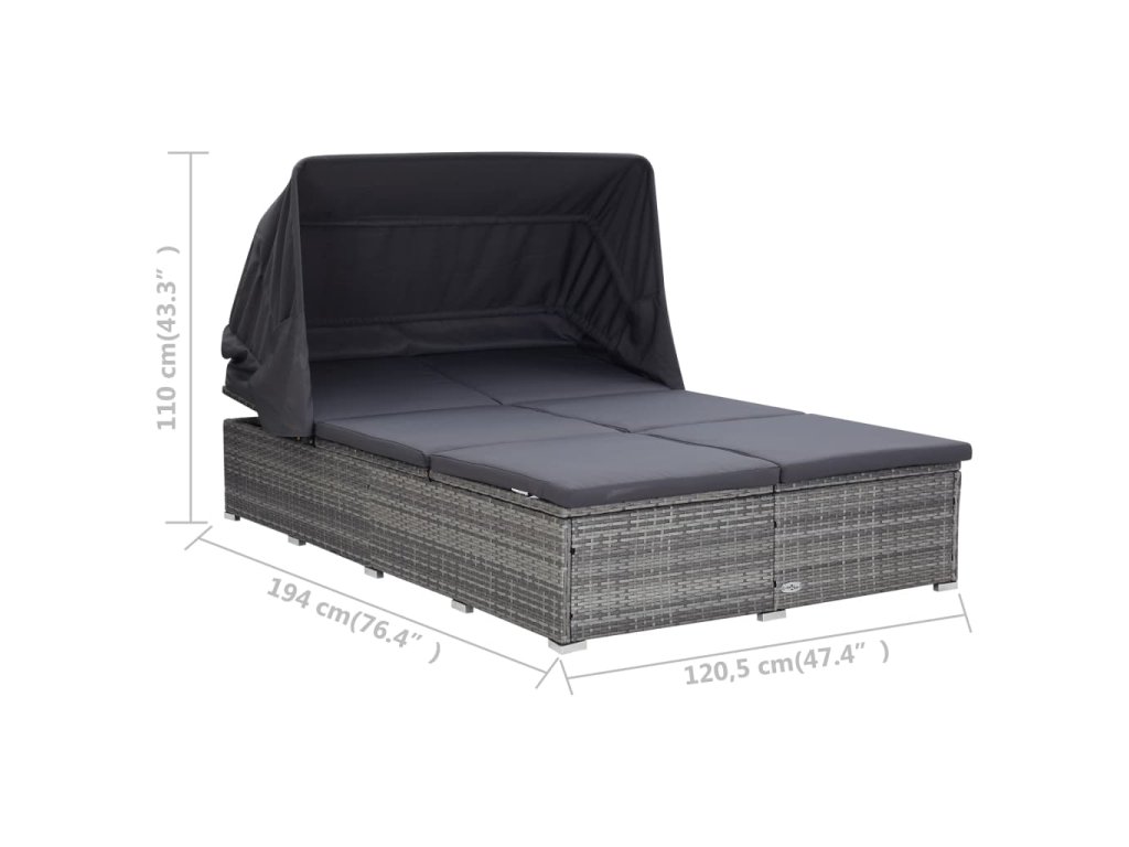 2místné zahradní lehátko s poduškou polyratan šedé 310236