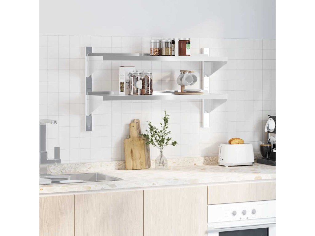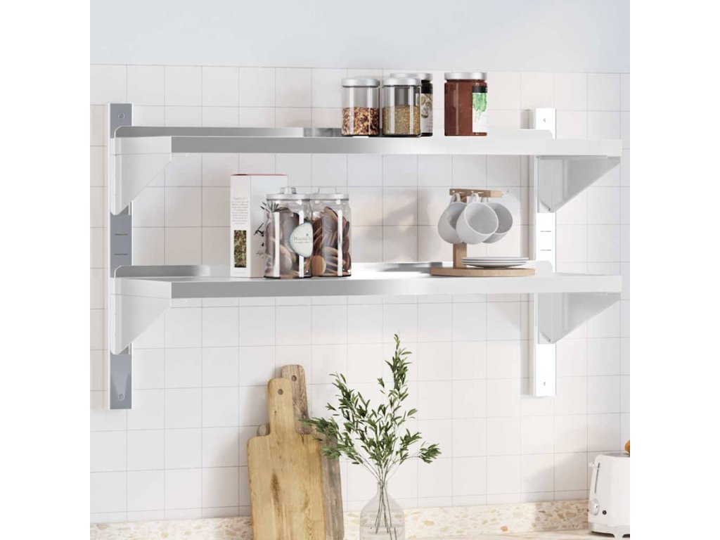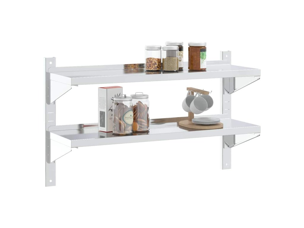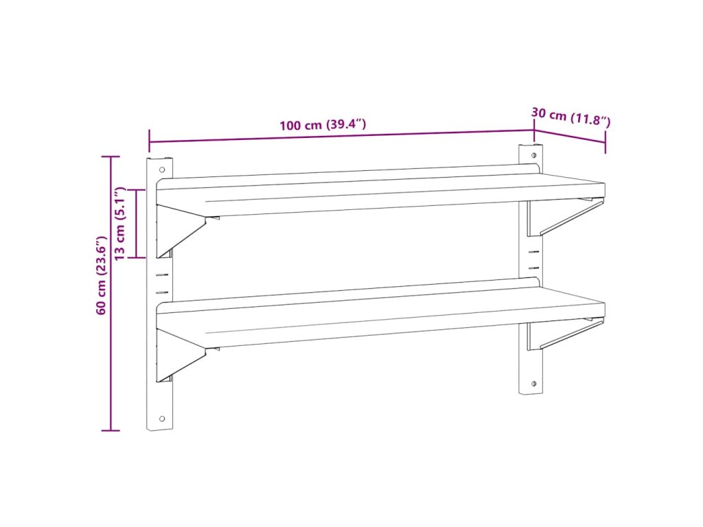 2patrová nástěnná police 100x30x60 cm stříbrná nerezová ocel 30310