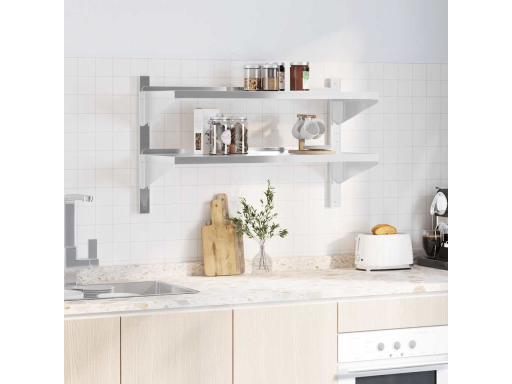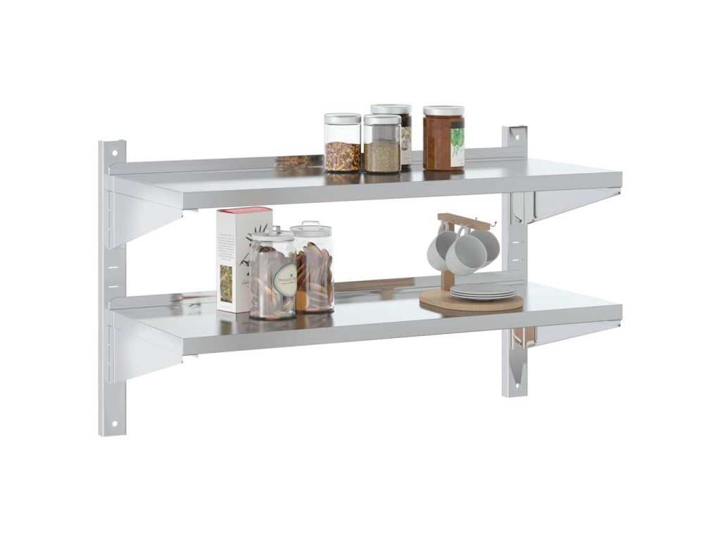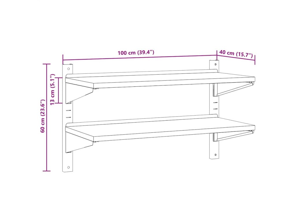 2patrová nástěnná police 100x40x60 cm stříbrná nerezová ocel 30309