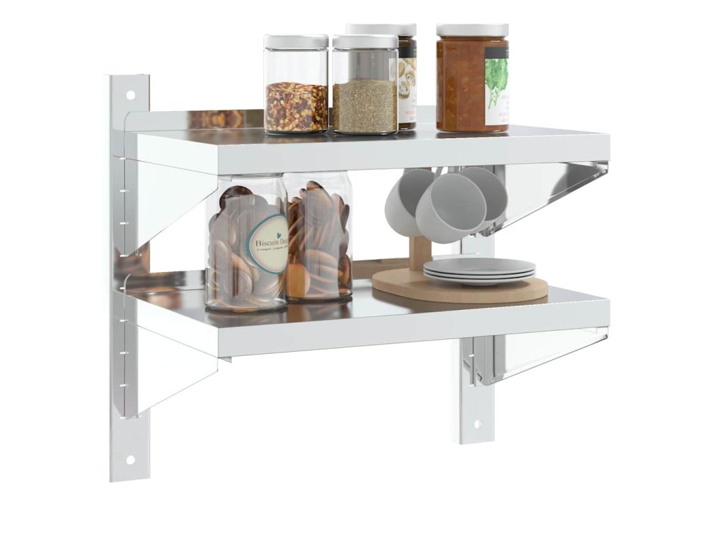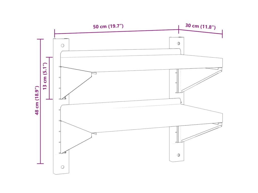 2patrová nástěnná police 50 x 30 x 48 cm stříbrná nerezová ocel 30316