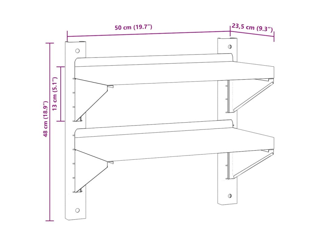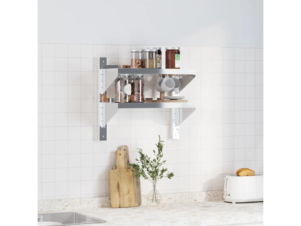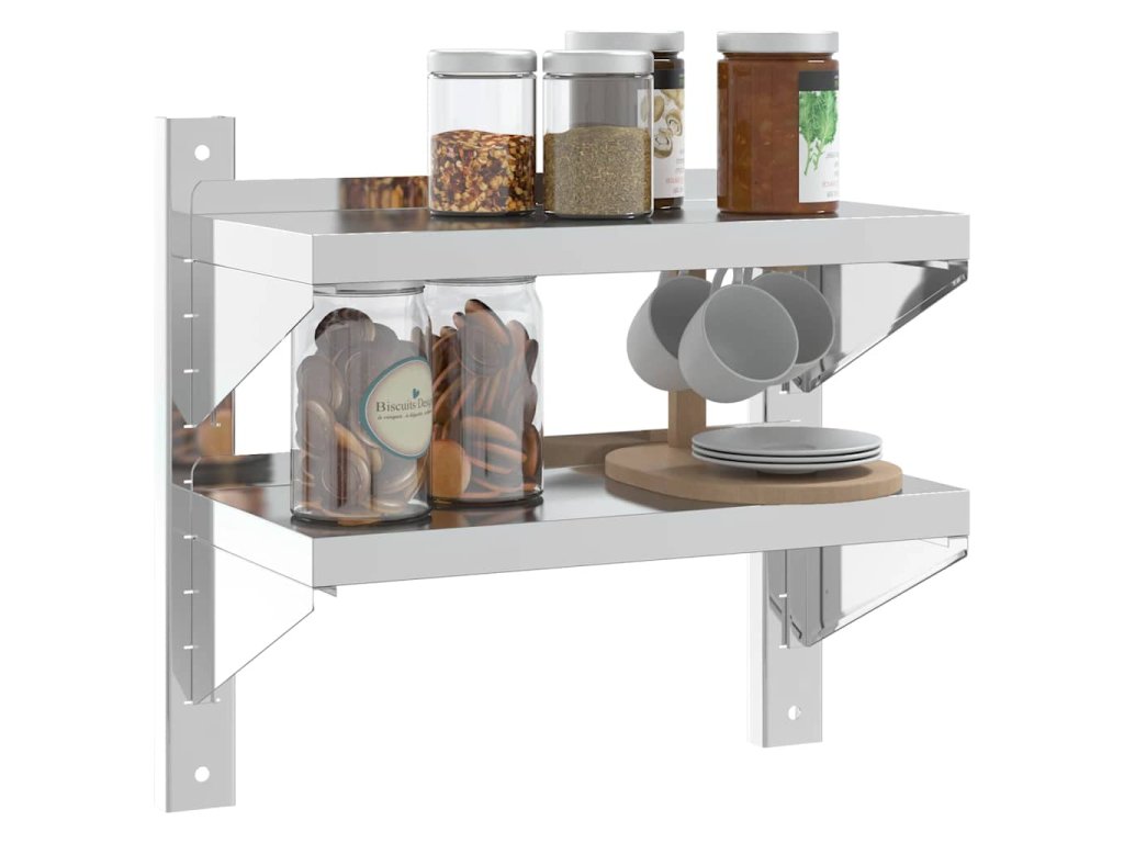 2patrová nástěnná police 50x23,5x48 cm stříbrná nerezová ocel 30317
