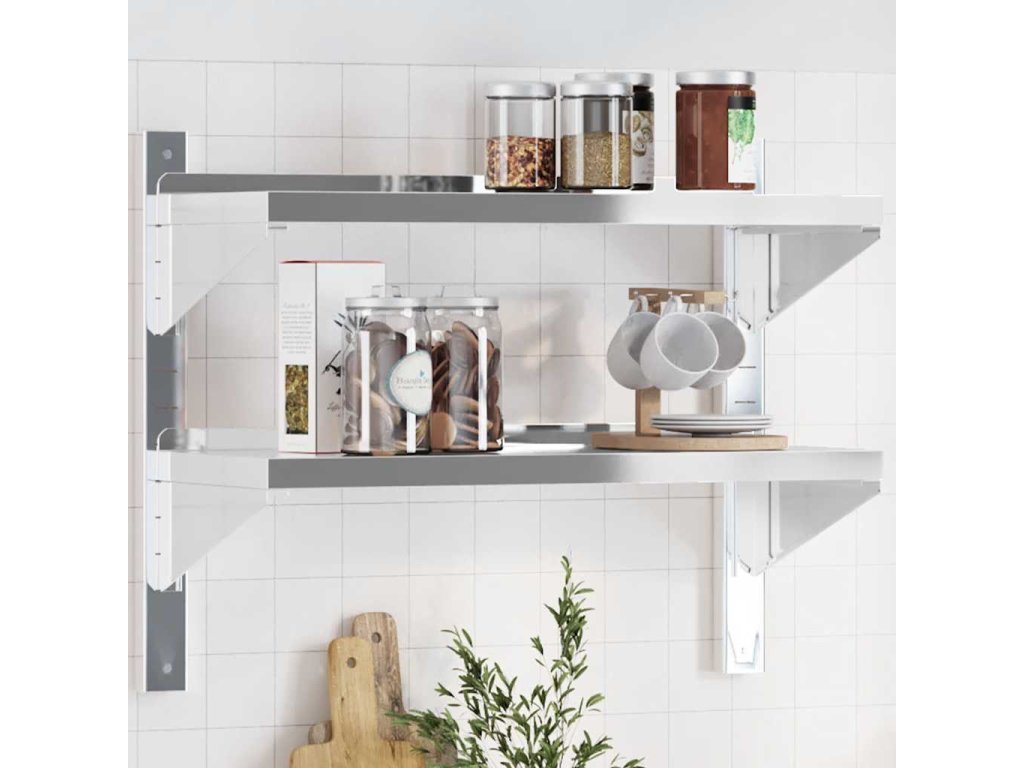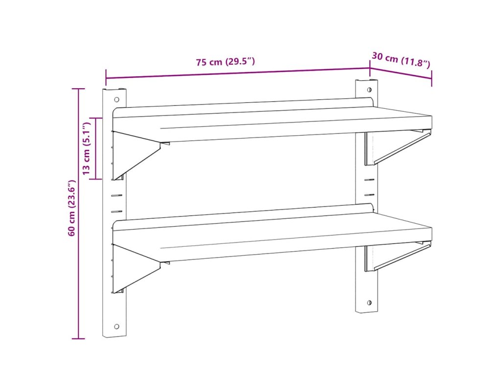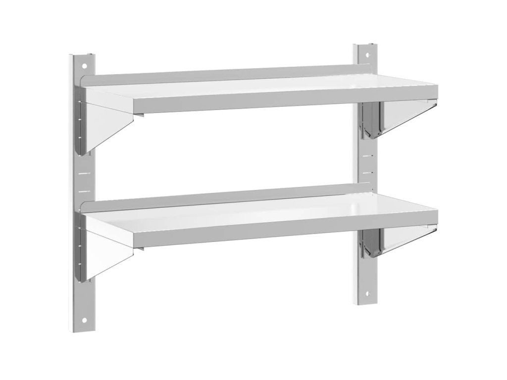 2patrová nástěnná police 75 x 30 x 60 cm stříbrná nerezová ocel 30313