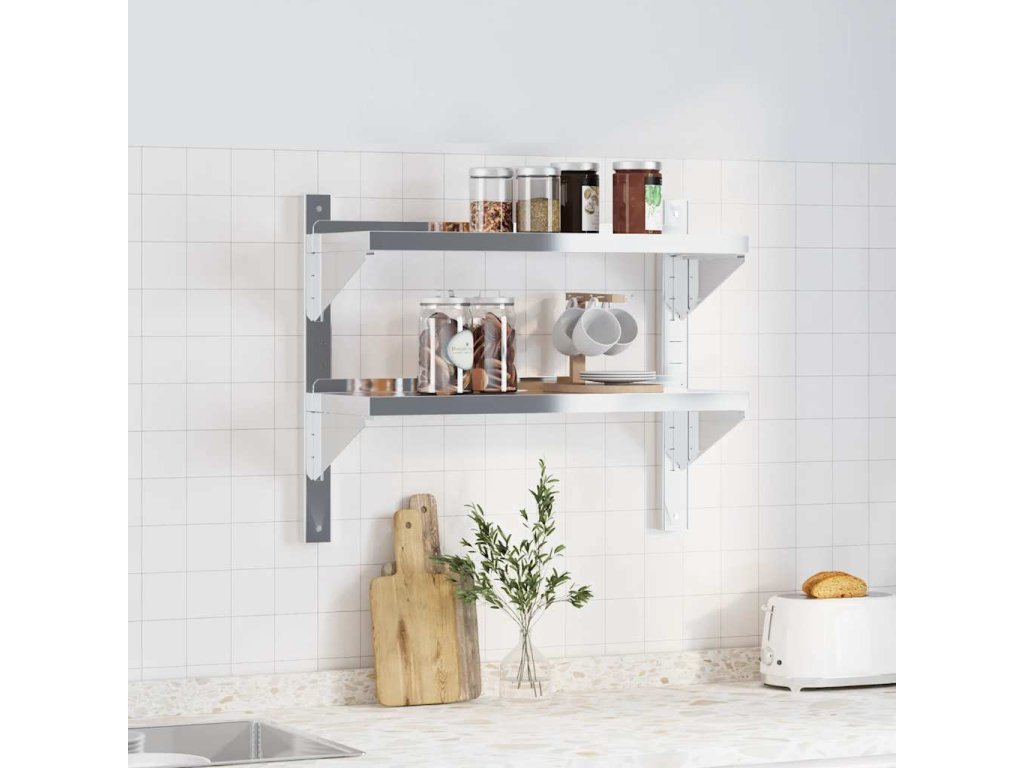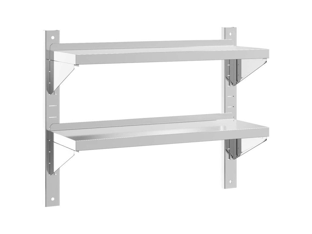 2patrová nástěnná police 75x23,5x60 cm stříbrná nerezová ocel 30314