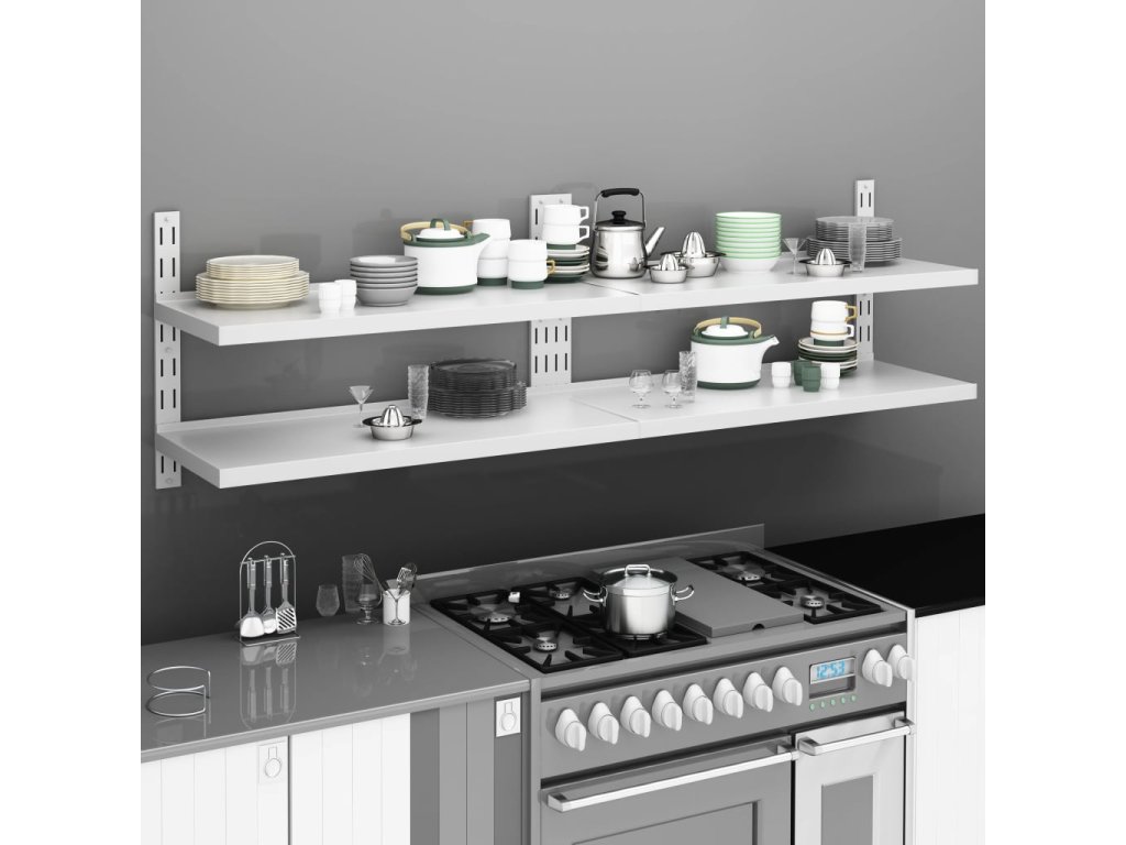 Naše sada 2patrových nástěnných polic z nerezové oceli je nejen stylová, ale také velmi praktická a ideálně se hodí pro všechny, kdo potřebují v kuchyní více úložného prostoru. Nabízí perfektní úložné řešení pro talíře, nádobí či jiné kuchyňské náčiní.