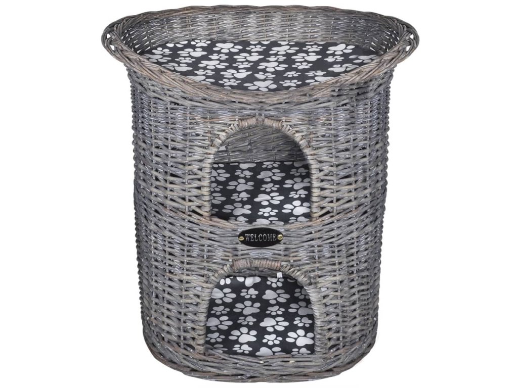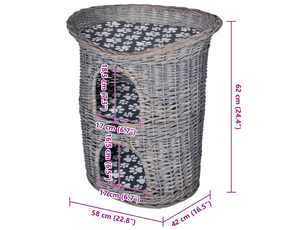 Tento 2patrový kočičí domeček / věž z vrbového proutí není jenom pohodlným místem, kde může vaše kočka spát a odpočívat, ale jeho klasický proutěný design se navíc hodí do každého interiéru. Bude to skvělý dárek pro vašeho domácího mazlíčka nebo pro kamaráda, který má rád zvířátka!