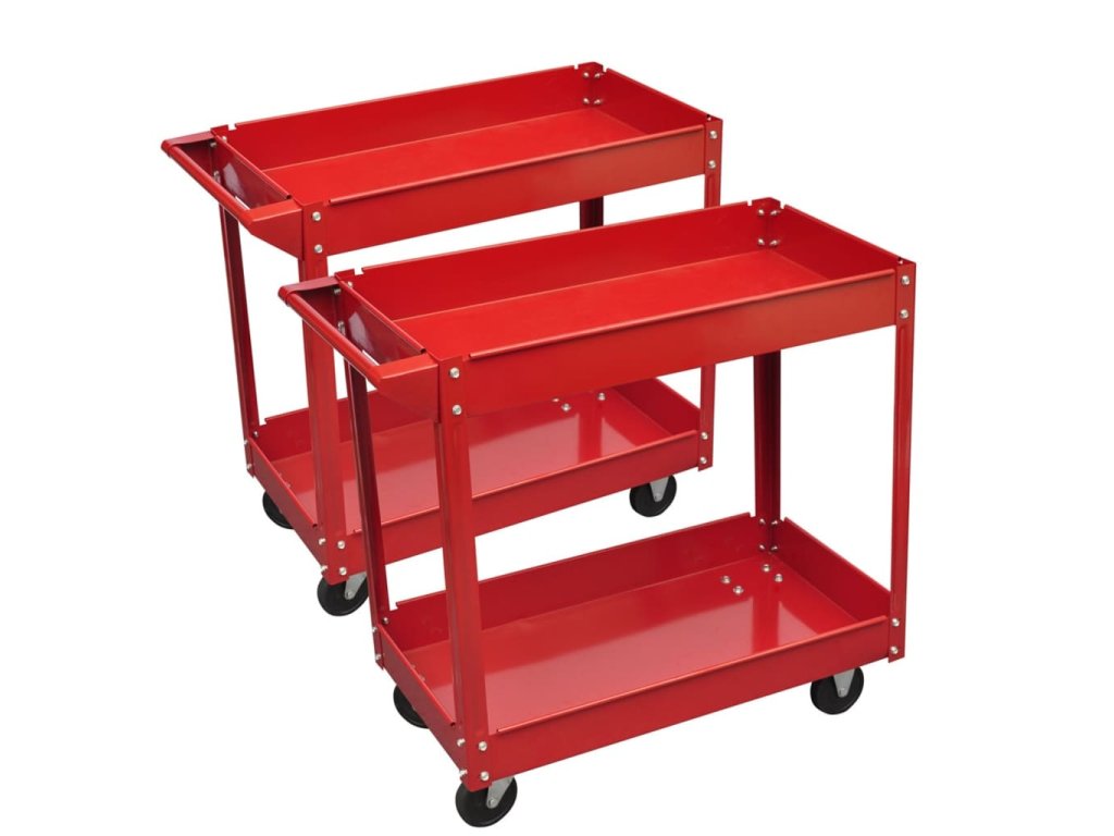 Tento dílenský vozík na nářadí má robustní konstrukci se 2 policemi a unese maximální zatížení 100 kg. Tento dílenský vozík je perfektní volbou pro snadné a bezpečné skladování a přepravu vašeho nářadí v garáži a dílně. Má lakovanou ocelovou konstrukci. Všechna čtyři kolečka se mohou otáčet. Disponuje také vhodnou rukojetí pro manipulaci vozíku. V balení obdržíte 2 dílenské vozíky.