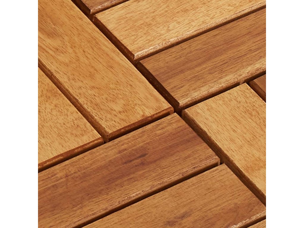 Podlahové dlaždice jsou vyrobené z kvalitního akáciového dřeva, což je tropické tvrdé dřevo, které je samozřejmně odolné proti vlivům počasí a má dlouhou životnost. Díky zacvakávacím spojením do sebe dlaždice jednoduše a těsně zapadnou a vytvoří tak stabilní povrch.
