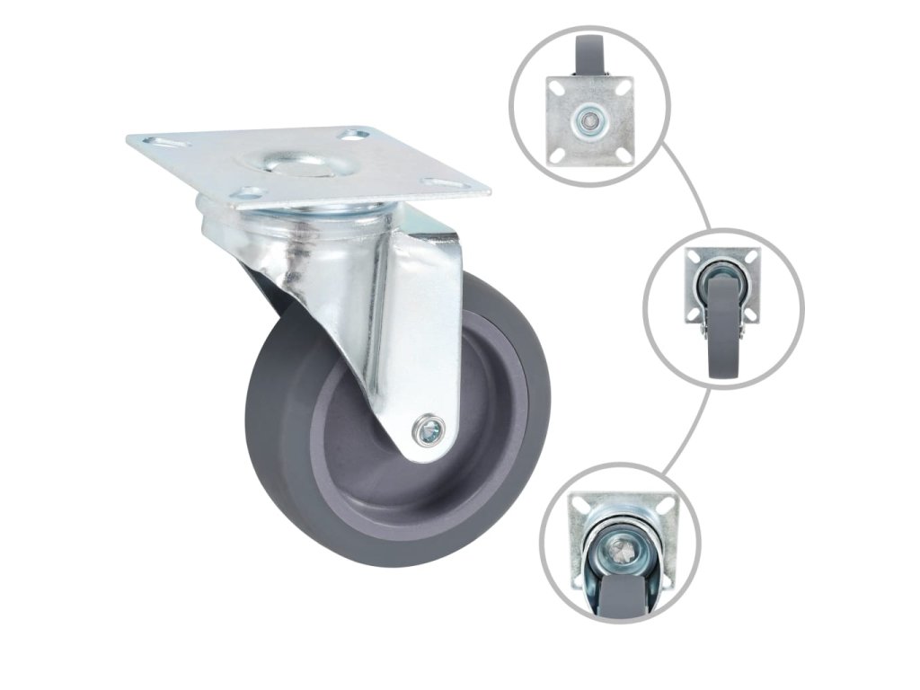 Kolečka jsou vyrobena z TPR (termoplastické gumy), která je známá pro svou schopnost pohlcovat nárazy a vibrace. Ať už tedy kolečka namontujete na cokoliv, budete to moci přesouvat hladce a v tichosti. Jejich hladký povrch navíc ochrání vaši podlahu před poškrábáním. Zinkem potažený ocelový rám je odolný proti rzi, dodává kolečkům na odolnosti a prodlužuje jejich životnost. Každé kolečko má maximální nosnost až 45 kg.