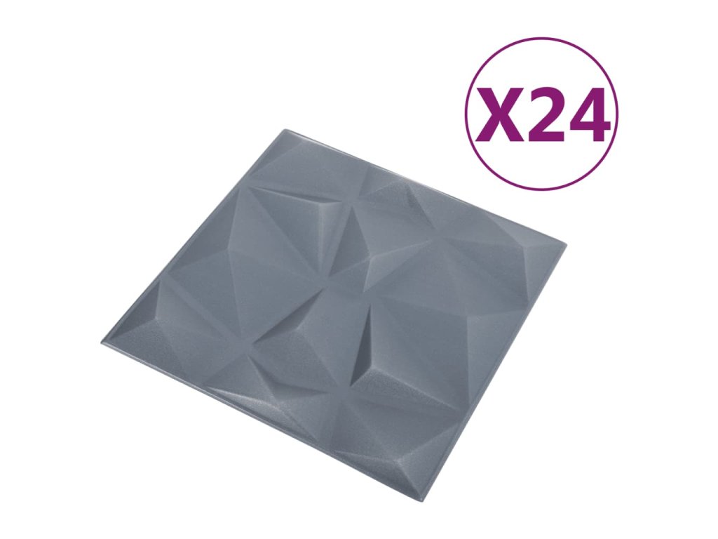 3D nástěnné panely 24 ks 50 x 50 cm diamant šedé 6 m² 150919