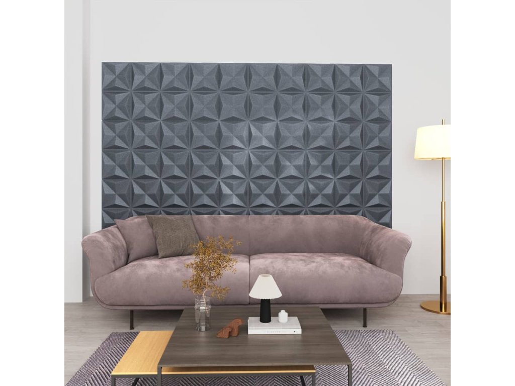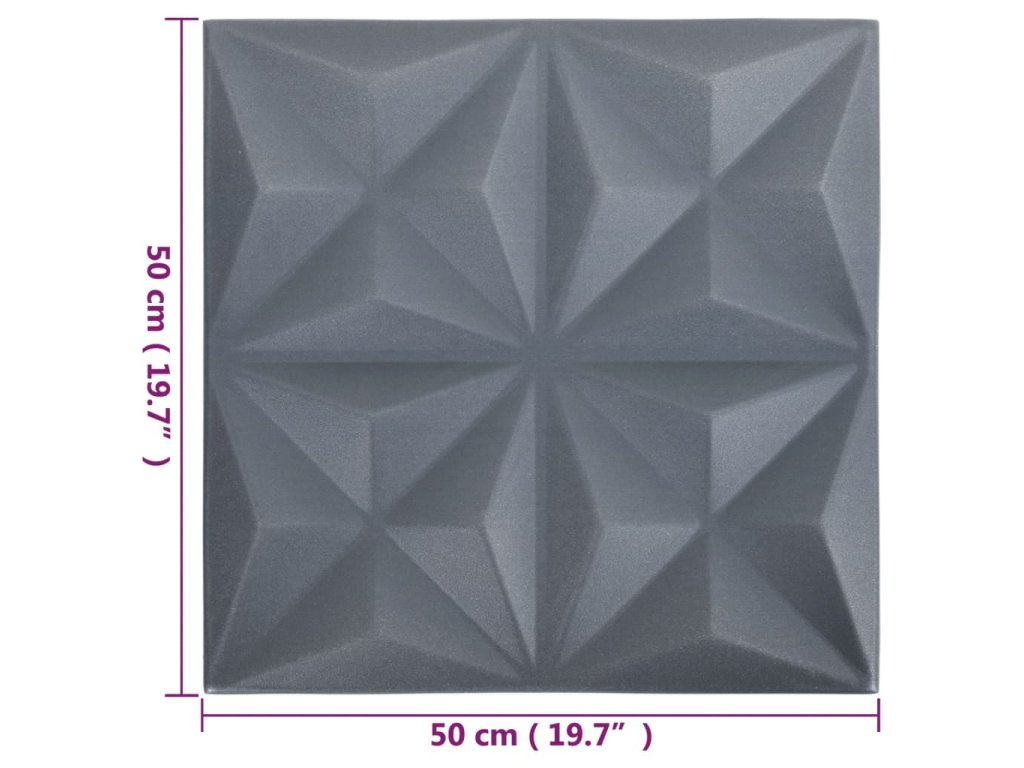 3D nástěnné panely 48 ks 50 x 50 cm origami šedé 12 m² 150922
