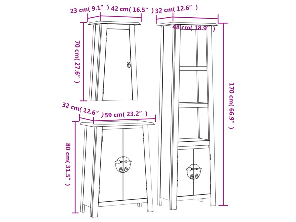 - Rozměry vysoké skříňky: 48 x 32 x 170 cm (Š x H x V)