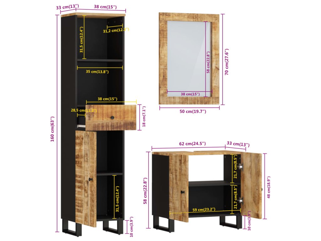 3dílná koupelnová sestava masivní mangovníkové dřevo 3200637