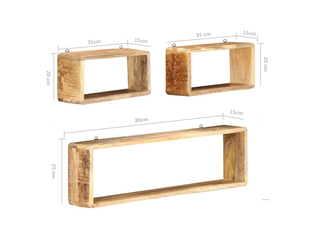 3dílná nástěnná sada krychlových polic masivní mangovník 285844