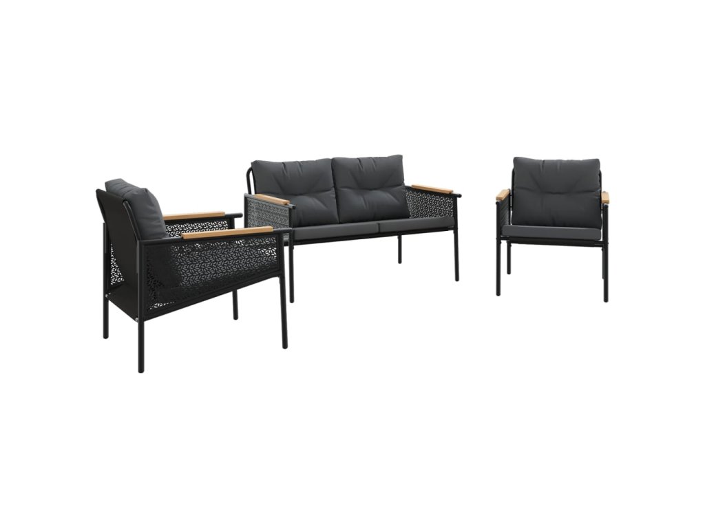 3dílná sada balkonového nábytku s poduškami černá ocel 3283635