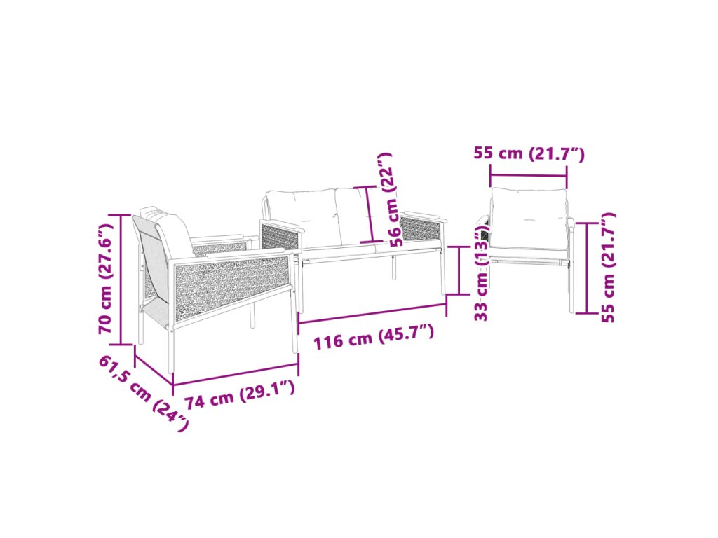 Tato sada balkonového nábytku je dokonalým doplňkem vaší zahrady, terasy nebo dvorku a poskytne vám pohodlné a příjemné místo, kde si můžete povídat s rodinou a přáteli nebo jen tak odpočívat a užívat si pobyt venku.