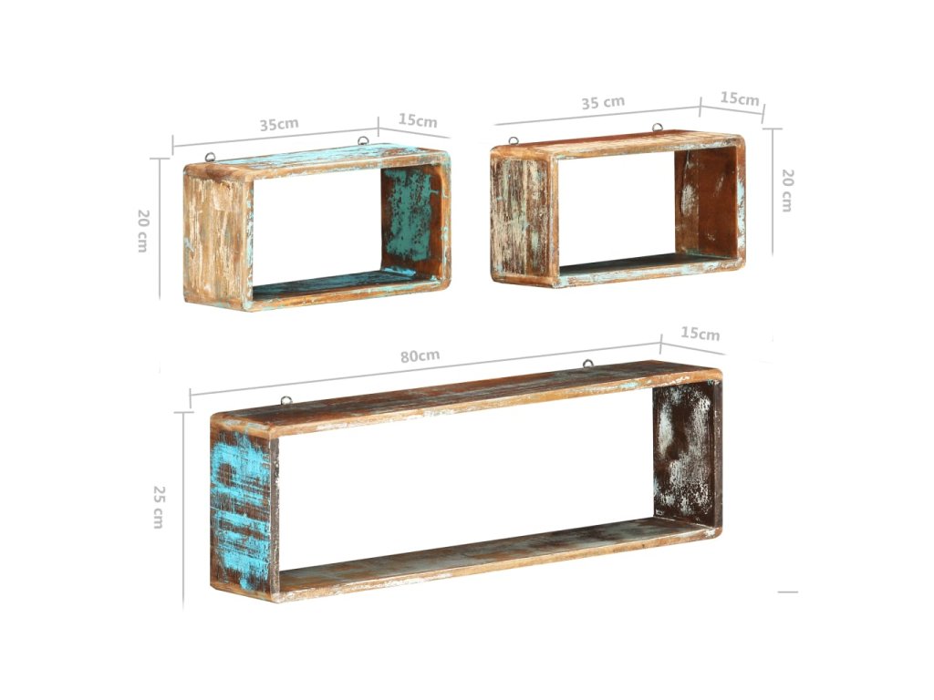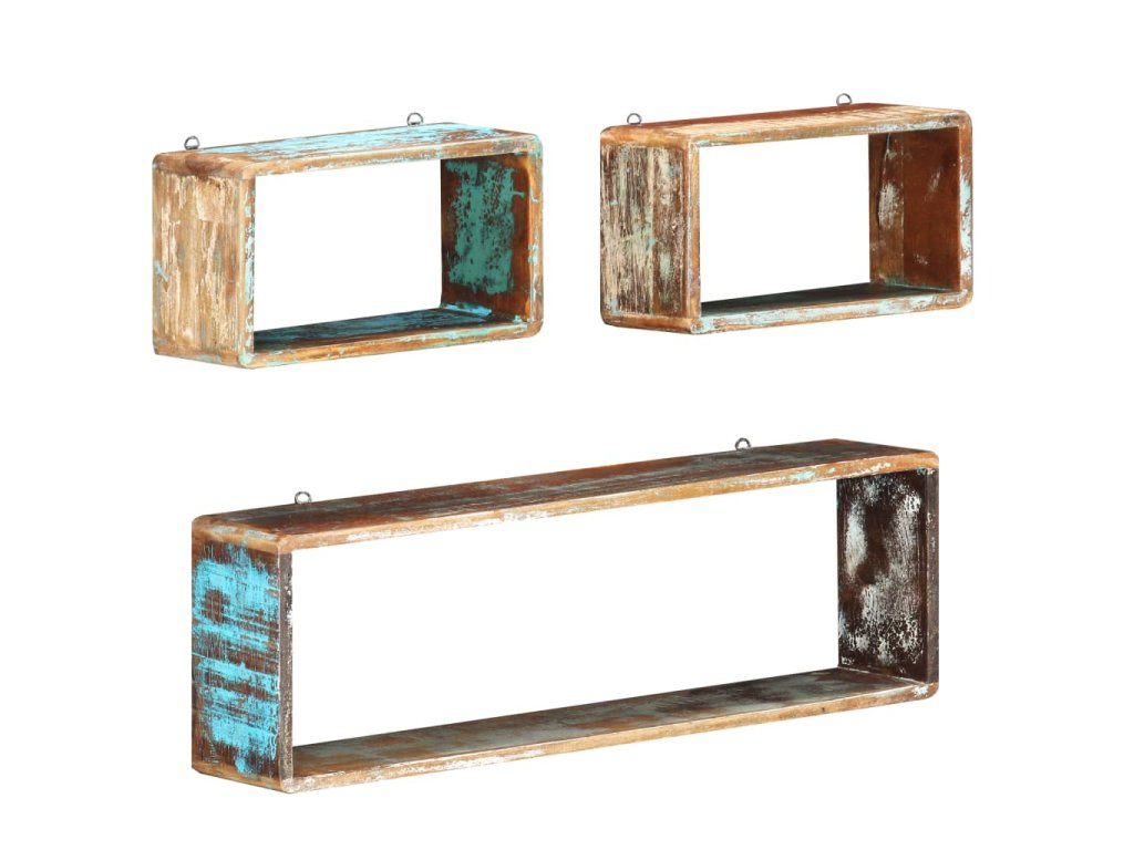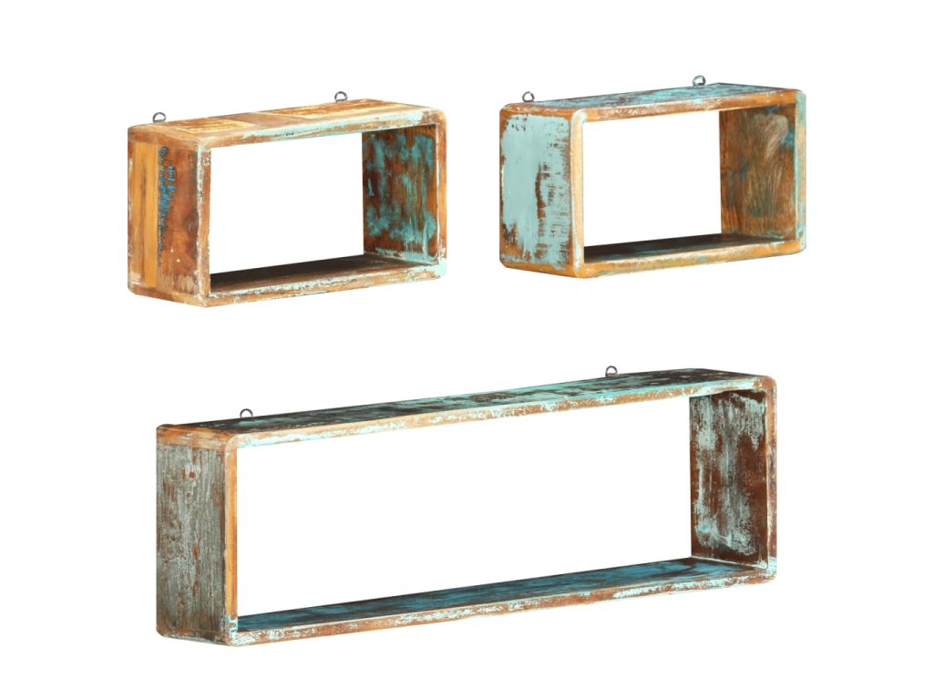 3dílná sada nástěnných polic kostek masivní recyklované dřevo 285845