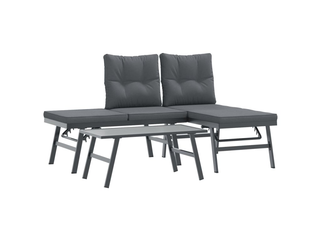 3dílná sada s lavicemi s poduškami černá práškově lakovaná ocel 3283710