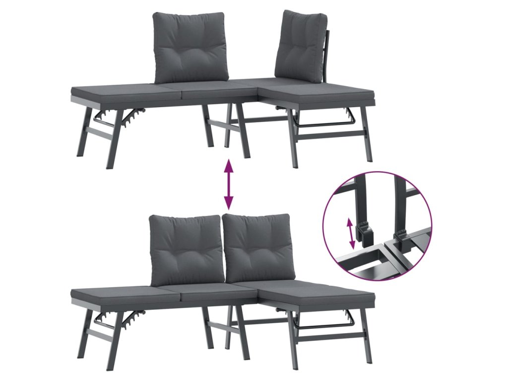 - Nastavitelné boční místo k sezení: Z každé pohovky lze zvednout malý boční sedák, čímž se pohovka promění v pohodlné místo pro odpočinek. Nastavitelný sedák lze nastavit do 3 různých úrovní, aby vyhovoval vašim potřebám při čtení, opalování nebo podřimování.