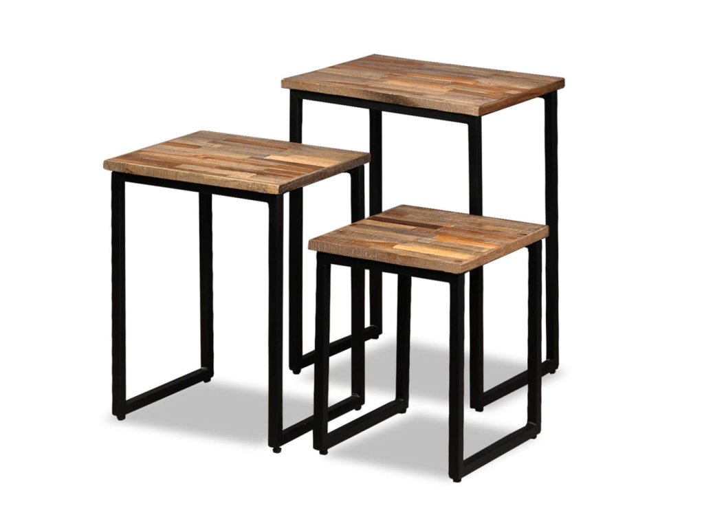 3dílná sada stohovatelných stolků masivní recyklované dřevo 245407