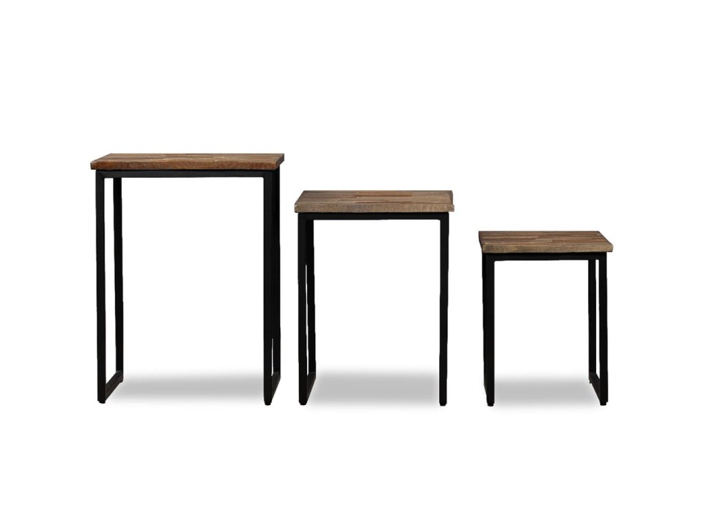 Tato sada stohovatelných konferenčních stolků je vyrobena z recyklovaného teaku, což znamená, že je každý kus nábytku jedinečný a lehce odlišný od ostatních. Recyklovaný teak je pevný, stabilní, odolný a překrásný. Silné ocelové nohy nejen zajišťují, že jsou tyto stohovatelné stolky velice bytelné a odolné, ale dodávají jim rovněž na jejich úchvatném industriálním vzhledu.