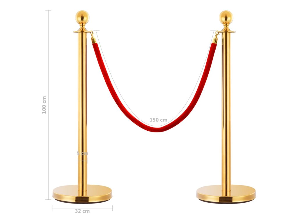 Bezpečnostní sloupky jsou vyrobené z prémiové nerezové oceli a vyznačují se speciálně zpracovanou stabilní a spolehlivou základnou. Vymezovací sloupky mají lesklý zrcadlový vzhled, který jim dodává eleganci. Sametové lano s délkou 150 cm je vybavené háčky pro snadné připnutí. Odolná základna je navíc dostatečně těžká a stabilní, aby zabránila převrácení.
