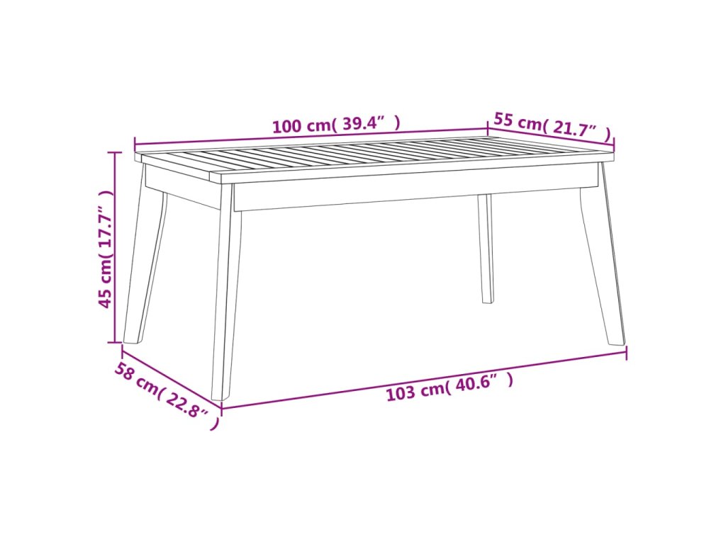 - Stabilní a snadno čistitelná stolní deska: Tento zahradní stolek má desku z akáciového dřeva, která je stabilní, odolná a snadno se čistí vlhkým hadříkem.