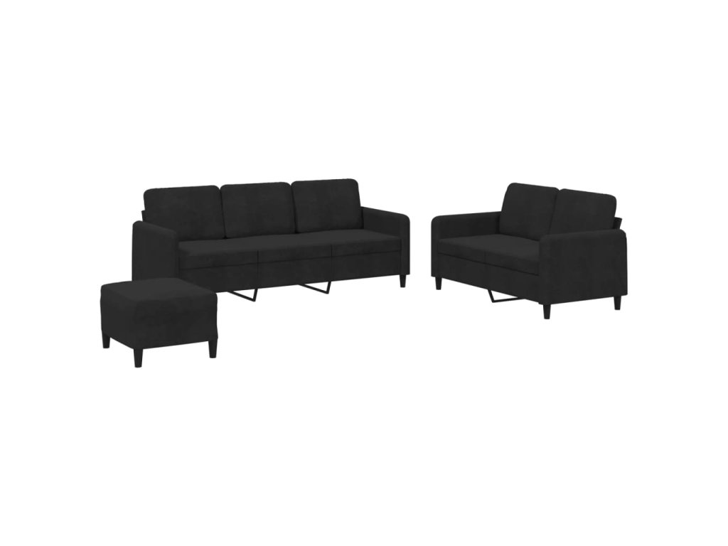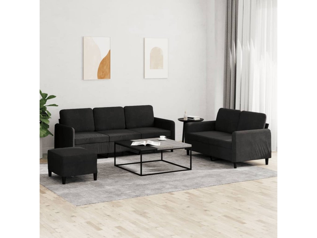 3dílná sedací souprava černá samet 3202029