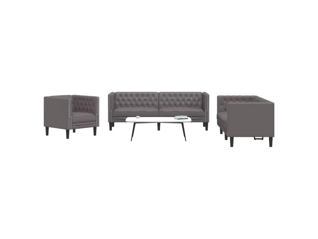 3dílná sedací souprava Chesterfield šedá umělá kůže 3209270